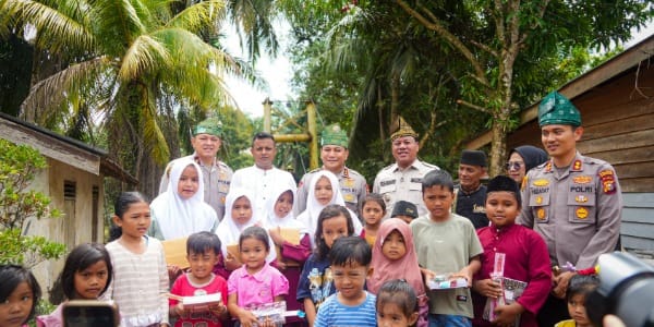 Tidak hanya melakukan pengecekan teknis, Kapolda Riau juga menunjukkan kepedulian sosial dengan membagikan bantuan buku dan alat tulis kepada anak-anak sekolah di Desa Muara Petai. Aksi tersebut disambut antusias para siswa yang selama ini mendambakan akses jembatan yang aman dan layak.