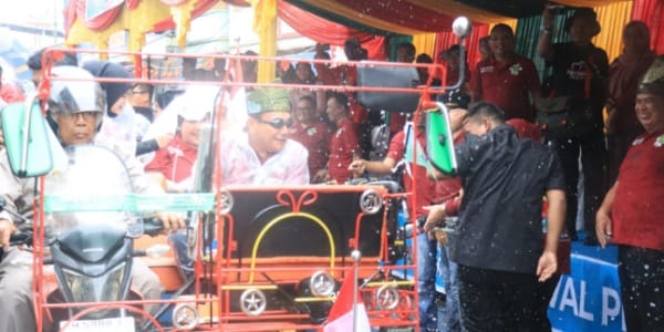 Konvoi becak motor menghiasi jalanan kota. Di kanan-kiri jalan, warga bersiap dengan ember dan pistol air. Tawa pecah ketika peserta saling “menyerang” dengan siraman air, menciptakan simbol pembersihan diri dan harapan baik di tahun yang baru.
