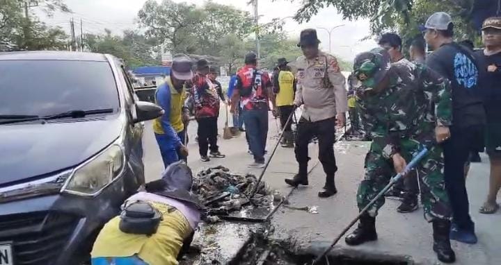 Kegiatan ini melibatkan unsur Polri, TNI, Dinas PUPR Kota Pekanbaru, organisasi kemasyarakatan (ormas), serta masyarakat setempat.