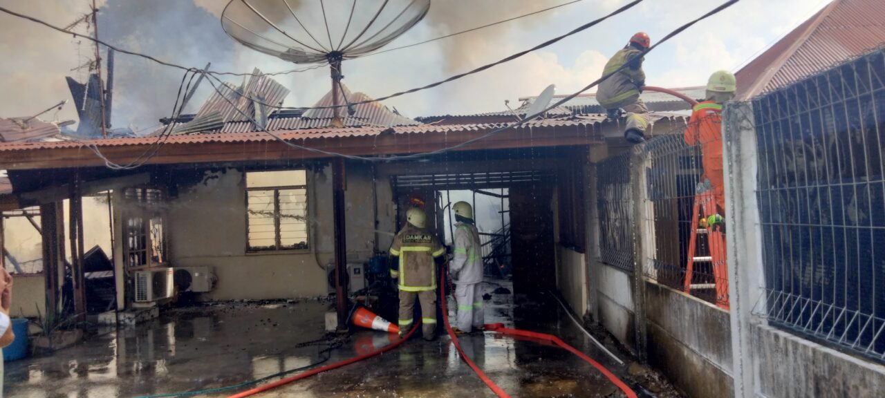 Peristiwa tersebut menghanguskan sedikitnya dua unit rumah dinas beserta sejumlah kendaraan yang berada di dalamnya.